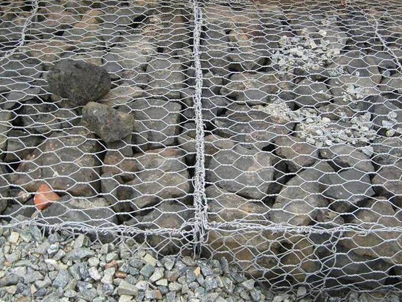 雷諾護(hù)墊箱是用鋼絲通過專用設(shè)備生產(chǎn)而成。在編織工藝中采用的是雙絞合六邊形金屬網(wǎng)格,因?yàn)椴捎昧诉@種特殊的編織方式,單個(gè)網(wǎng)格在發(fā)生破損時(shí),都不會引發(fā)相鄰的網(wǎng)格的破損。