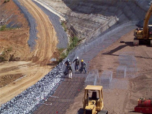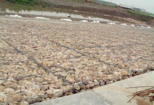 (一)格賓及雷諾護(hù)墊均是由特殊防腐處理的低碳鋼絲經(jīng)機(jī)器編織成的六邊形雙絞合鋼絲網(wǎng),在工廠做成符合工程要求的網(wǎng)箱結(jié)構(gòu),在施工現(xiàn)場(chǎng)用石料填充,其結(jié)構(gòu)具有柔性、透水性及整體性等特點(diǎn)。 (二)格賓及雷諾護(hù)墊內(nèi)部每間隔1米采用橫隔板隔成獨(dú)立的單元,根據(jù)施工現(xiàn)場(chǎng)情況組合使用;長(zhǎng)度、寬度、高度公差±5%;網(wǎng)孔尺寸也可根據(jù)工程現(xiàn)場(chǎng)填充石料料場(chǎng)的實(shí)際粒徑大小與廠家商定,但填充石料的最小粒徑不得小于150px;格賓及雷諾護(hù)墊的外型尺寸也可根據(jù)工程,我們是生產(chǎn)廠家,可以根據(jù)客戶需求定制。 (三)鋼絲采用熱厚鍍鋅并覆塑方式防腐處理,具體指標(biāo)見(jiàn)格賓及雷諾護(hù)墊設(shè)計(jì)參數(shù)表。 (四)力學(xué)指標(biāo):網(wǎng)面抗拉強(qiáng)度為50KN/m,鋼絲的抗張強(qiáng)度應(yīng)在350-50N/m2之間,延伸率不能低于10%,符合EN1023-3標(biāo)準(zhǔn)。 (五)翻邊要求:網(wǎng)面裁剪后末端與邊緣鋼絲的連接處是整個(gè)結(jié)構(gòu)的薄弱環(huán)節(jié),為加強(qiáng)網(wǎng)面與邊緣鋼絲的連接強(qiáng)度,需采用專業(yè)的翻邊機(jī)將網(wǎng)面鋼絲纏繞在邊端鋼絲上≥2.5圈,不能采用手工絞。 (六)絞邊要求:鋼絲必須采用與網(wǎng)面鋼絲一樣材質(zhì)的鋼絲,為保證連接強(qiáng)度需嚴(yán)格按照間隔10~375px單圈-雙圈交替絞合。 (七)面網(wǎng)加強(qiáng)拉筋設(shè)置要求:為了避免面網(wǎng)受壓鼓出影響整體受力,必須在格賓及雷諾護(hù)墊的內(nèi)外兩片網(wǎng)板之間用3.2m的加強(qiáng)拉筋將內(nèi)外兩片網(wǎng)板拉緊綁扎一體。加強(qiáng)拉筋縱橫間距每625px一根,每平方米網(wǎng)板均勻布置9根。 (八)為防止風(fēng)浪或水流對(duì)岸坡地基的淘刷,應(yīng)在修整后的地基上鋪單位重200g/m2反濾無(wú)紡布,在反濾無(wú)紡布上鋪設(shè)格賓或雷諾護(hù)墊。 (九)將格賓或雷諾護(hù)墊網(wǎng)運(yùn)到施工現(xiàn)場(chǎng)后,在靠近安裝位置的平整場(chǎng)地上打開,將格賓或雷諾護(hù)墊置于平實(shí)的地面,壓實(shí)多余的折痕,應(yīng)避免損傷保護(hù)層。用綁扎鋼絲按設(shè)計(jì)要求將內(nèi)外面板、底板、隔板、端板進(jìn)行組裝成型,同時(shí)按第七條要求在內(nèi)外兩片網(wǎng)板之間安裝加強(qiáng)拉筋,以增強(qiáng)格賓或雷諾護(hù)墊的整體性和面層平整度。 (十)對(duì)相鄰格賓或雷諾護(hù)墊的上下四角用雙股組合鋼絲綁扎,四周框線每間隔625px綁扎一道,使相鄰格賓或雷諾護(hù)墊牢固連接共同受力。 (十一)填充石料時(shí)應(yīng)先填充一半高度(對(duì)雷諾護(hù)墊先填充一半厚度),用人工將石料擺放整齊,并用細(xì)石填縫密實(shí),再填充另一半,以保證箱體內(nèi)填充石料的密實(shí)和平整。為避免由于單邊裝填引起隔板變形,緊靠隔板兩邊的石頭必須同時(shí)進(jìn)行裝填。在斜坡上施工時(shí),應(yīng)從坡地向坡頂進(jìn)行裝填,并確保每個(gè)隔板的頂部都露出來(lái),便于封口絞合。 (十二)對(duì)裸露的填充石料,表面用人工砌壘整平,讓石料間相互咬合,填充石料頂面應(yīng)預(yù)留75px的沉降高度。石料填充完畢后,用網(wǎng)蓋將格賓或雷諾護(hù)墊加蓋,并與內(nèi)外面板、端板、隔板牢固綁扎一體,四周封口綁扎間距以最小直徑的填充石料不漏出為宜,同時(shí)綁扎好內(nèi)外面網(wǎng)之間的加強(qiáng)拉筋,使組裝成型后的格賓或雷諾護(hù)墊邊緣整齊,表面飽滿平整,整體綁扎牢固,相鄰聯(lián)為一體。 (十三)填充石料要求:堅(jiān)硬無(wú)風(fēng)化、不易水解、不易碎的卵石或塊石。格賓填充石料粒徑以100-200m為宜。雷諾護(hù)墊填充石料粒徑以70-100m為宜。 (十四)格賓及雷諾護(hù)墊的安裝應(yīng)在專業(yè)廠家的指導(dǎo)下進(jìn)行。