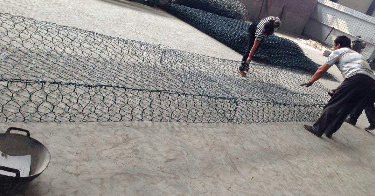 安裝要求:將折疊好的格賓護(hù)墊置于平實(shí)的地面展開(kāi),壓平多余的折痕,將前后面板、底板、隔板立起到一定位置,呈箱體形狀。相鄰網(wǎng)箱的上下四角以雙股組合絲連接,上下框線(xiàn)或折線(xiàn)綁扎并使用螺旋固定絲絞合收緊連結(jié)。邊緣突出部分需折疊壓平。將每個(gè)網(wǎng)箱六個(gè)面及隔斷組裝完整,確保各個(gè)網(wǎng)面平整,然后放在正確的位置上。