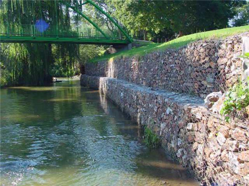 石籠網(wǎng)結構在流速較大的河道上作護坡或擋墻工程,抗沖刷能力強。據(jù)有關實驗證明,石籠網(wǎng)結構的防沖系數(shù)是一般拋石防護工程防沖系數(shù)的兩倍。受水流沖刷影響,石籠網(wǎng)護墊內(nèi)的塊石即使產(chǎn)生位移,變形后的箱籠結構會產(chǎn)生新的平衡,總體完整性不會遭到破壞。石籠網(wǎng)結構為柔性結構,箱籠內(nèi)填石塊或其他材料存在一定空隙,風浪浪峰上拍時,浪花被粉碎,減少了浪壓的沖擊力;風浪浪峰退下時,因箱籠有空隙,破壞了風浪的真空吸力,又減少了對防護工程的破壞力度,加之整體結構可在風浪力作用時自行微調,可有效避免墻身出現(xiàn)裂縫。