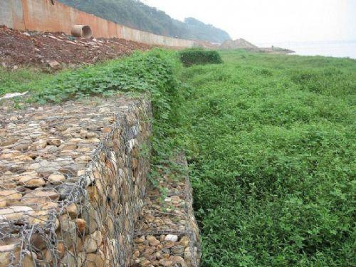 固濱籠(格賓石籠)是由蜂巢形格網(wǎng)片,將特種鋼絲鍍膜后,由專用機(jī)械編織成的雙絞、蜂巢形網(wǎng)片組裝成箱籠,根據(jù)工程設(shè)計(jì)要求裁剪、制作、組裝成箱籠并裝入塊石等填充料后連接成一體的結(jié)構(gòu),是用做堤身,堤基及路基等防護(hù)工程的新型結(jié)構(gòu)。岸結(jié)構(gòu)形式可以分為擋墻、護(hù)坡、護(hù)底、護(hù)腳、水下拋石籠等。習(xí)慣上又將護(hù)坡、護(hù)底工程上常用的較薄的一種箱籠稱格賓網(wǎng)墊(高度一般在0.17—40cm)。擋墻、拋石籠常用的較厚的一種稱為格賓網(wǎng)箱(一般高度在50cm以上)。治理山坡、綠化植被及水土保持常用的則稱為格賓植被掛網(wǎng)。