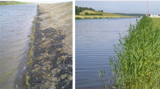 4、可實施植被綠化,人工鋪設(shè)的土層或土壤在加筋麥克墊工程填充料間的間隙中自然沉積,為綠化植被創(chuàng)造了生存環(huán)境,無需撒種,植物也會在沉積的泥土中自然長出。自然生長的植物抗逆性強,適應(yīng)當(dāng)?shù)貧夂虻乩砩L條件,能夠長時間維持水邊的植被環(huán)境,實現(xiàn)優(yōu)化、美化環(huán)境、改善生態(tài)環(huán)境
