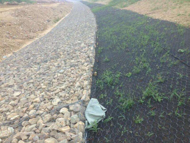 5、加筋麥克墊的鋼絲具有一定的抗拉強度,不易被拉斷,填充料之間又充滿了空隙,具有一定的適應(yīng)變形的能力。當(dāng)?shù)鼗闆r發(fā)生變化時,如發(fā)生不均勻沉降、地震等,箱內(nèi)填充料受箱籠的約束不會跑到箱籠外,而會自行調(diào)整形成新的平衡;又因箱籠系柔性結(jié)構(gòu),因此,防護工程表面可能會發(fā)生小的變異,但不會發(fā)生裂縫、網(wǎng)片被拉斷從而造成防護體被破壞的現(xiàn)象。