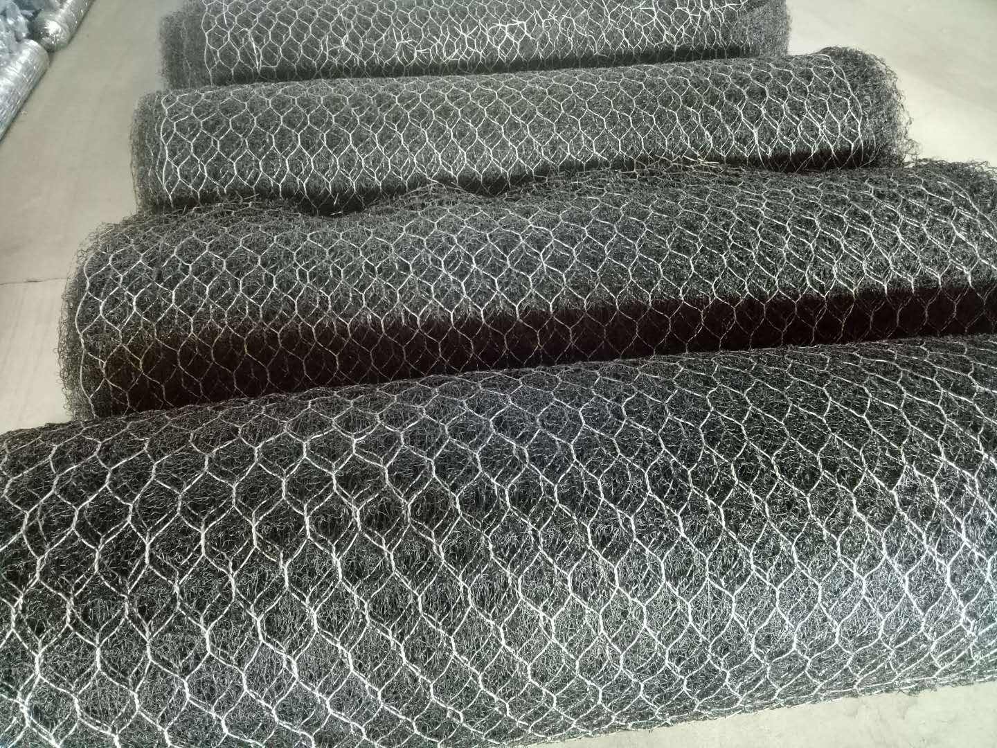 加筋麥克墊將熔融擠出噴絲成型的土工網(wǎng)墊包覆于機編雙絞或多絞六邊形鋼絲網(wǎng),形成聚丙烯土工墊結合六邊形雙絞合鋼絲網(wǎng)的結構。