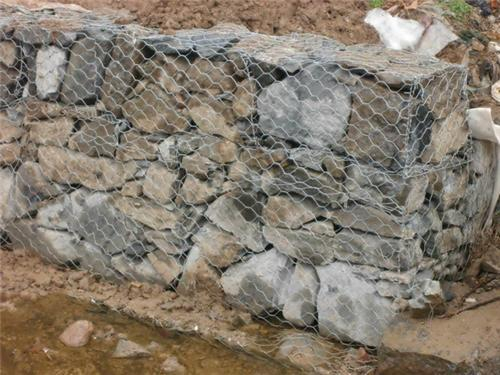 固濱籠具有固堤防沖刷的作用, 固濱籠工藝是指將特種鋼絲由專用機(jī)械編織成雙絞、蜂巢形網(wǎng)目的格網(wǎng)片,根據(jù)工程設(shè)計(jì)要求,裁剪、設(shè)計(jì)、組裝成箱籠并裝入塊石等填充料后連接成一體的結(jié)構(gòu),用作提防、路基防護(hù)工程。