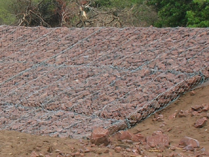 石籠網(wǎng)可用于邊坡支護(hù)、基坑支護(hù)、山體巖面掛網(wǎng)噴漿,石籠網(wǎng)箱、邊坡植生(綠化)、鐵路高速公路隔離護(hù)攔網(wǎng),它還能制成箱籠、網(wǎng)墊,用于江河、堤壩及海塘的防沖刷保護(hù),水庫(kù)、河流截流用網(wǎng)箱。河流最嚴(yán)重的災(zāi)害是水流沖刷河岸使其破壞,引發(fā)的洪水泛濫,導(dǎo)致生命財(cái)產(chǎn)遭受大量損失和大量水土流失。因此在處理上述問(wèn)題時(shí)侯,格該生態(tài)格網(wǎng)結(jié)構(gòu)的應(yīng)用成為最佳的解決方案之一,它能使河床河岸得到永久性保護(hù)。